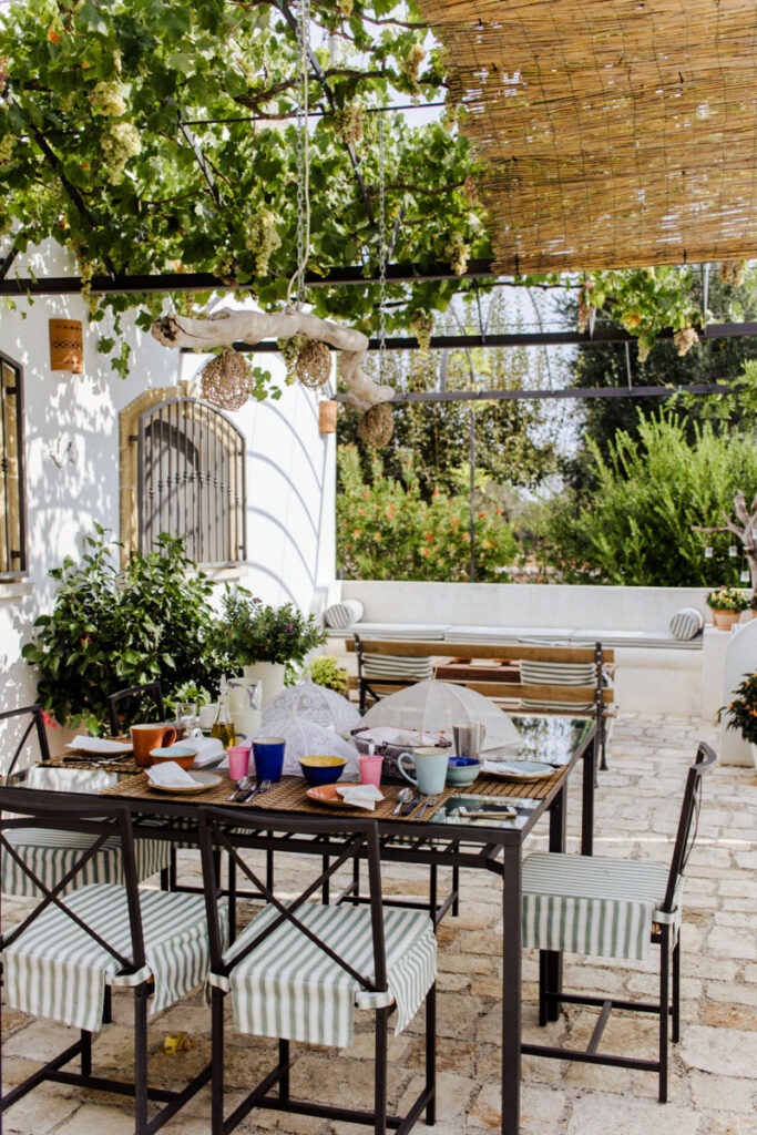 A experiência aqui foi diferente do Trullo I Sette Cone. É uma propriedade grande muito bem cuidada e decorada, onde os donos têm um anexo com 2 quartos e casa de banho para alugar. A piscina só se pode usar até às 14h (eu sei, eu sei… também não estava a contar com este horário). Mas o dia em que viemos à piscina gentilmente a dona, Carla, deixou-nos passar aqui o dia. Sorte! Porque não arredamos pé daqui até a hora do jantar.
